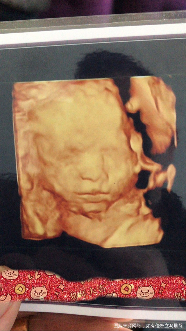 第一次看见宝宝这么清晰的面部 好开心哦 [大笑][大笑][大笑] 四维这是在妈妈肚子里第一张照片