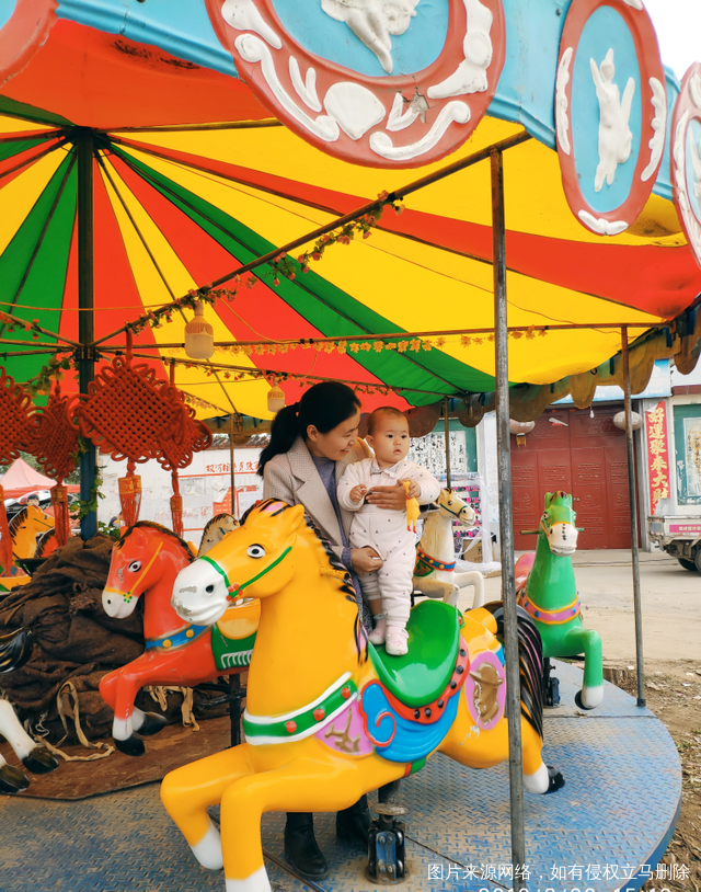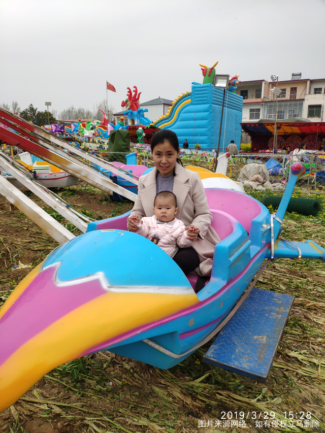 吃完饭又回镇上,刚好碰上游乐场,就去玩了一遍,把她高兴的不行,坐了木马,小火车,小飞机,还玩了充气城堡,玩的也不瞌睡了[大笑]