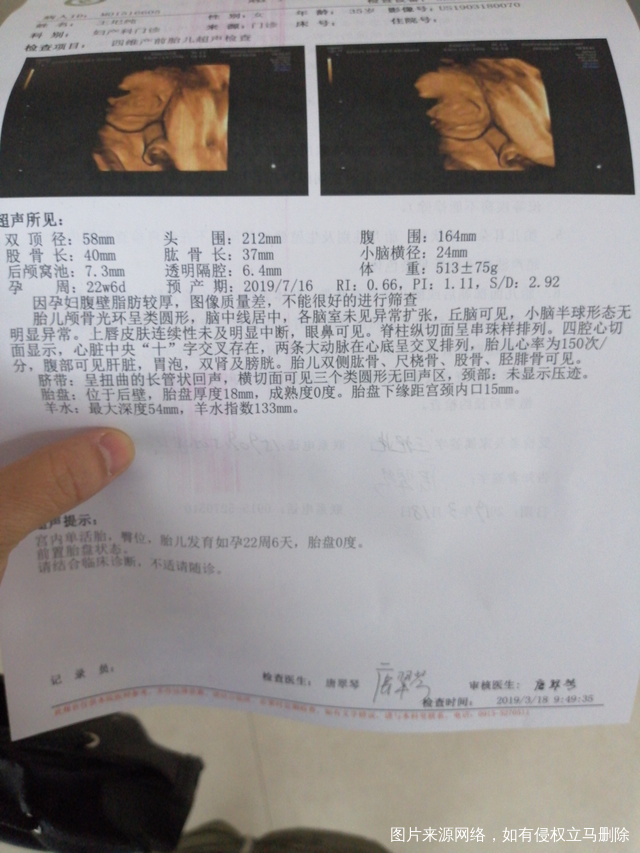 于是我就说忍着,躺床上,开始了第三次四维之旅。只听见B超师一会儿说一个,一会儿说一个,反正都是专业术语,听不太懂。唯一能听懂的,嗯,四腔看完了,上肢看完了,下肢看了……再快结束的时候,B超师的助手悄悄的说,这个好像可以一次性通过。B超师说,不能说,你没看我都是麻利的在看,一句话都不敢说,就是她一个转身给个屁股,啥都看不见了。[偷笑][偷笑][偷笑][偷笑]说实话,我差点被这话逗笑。