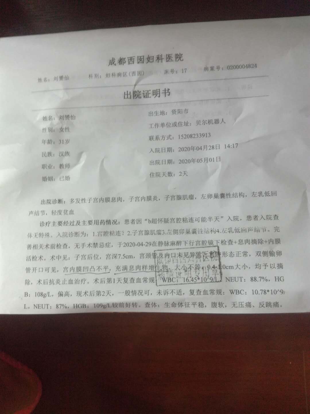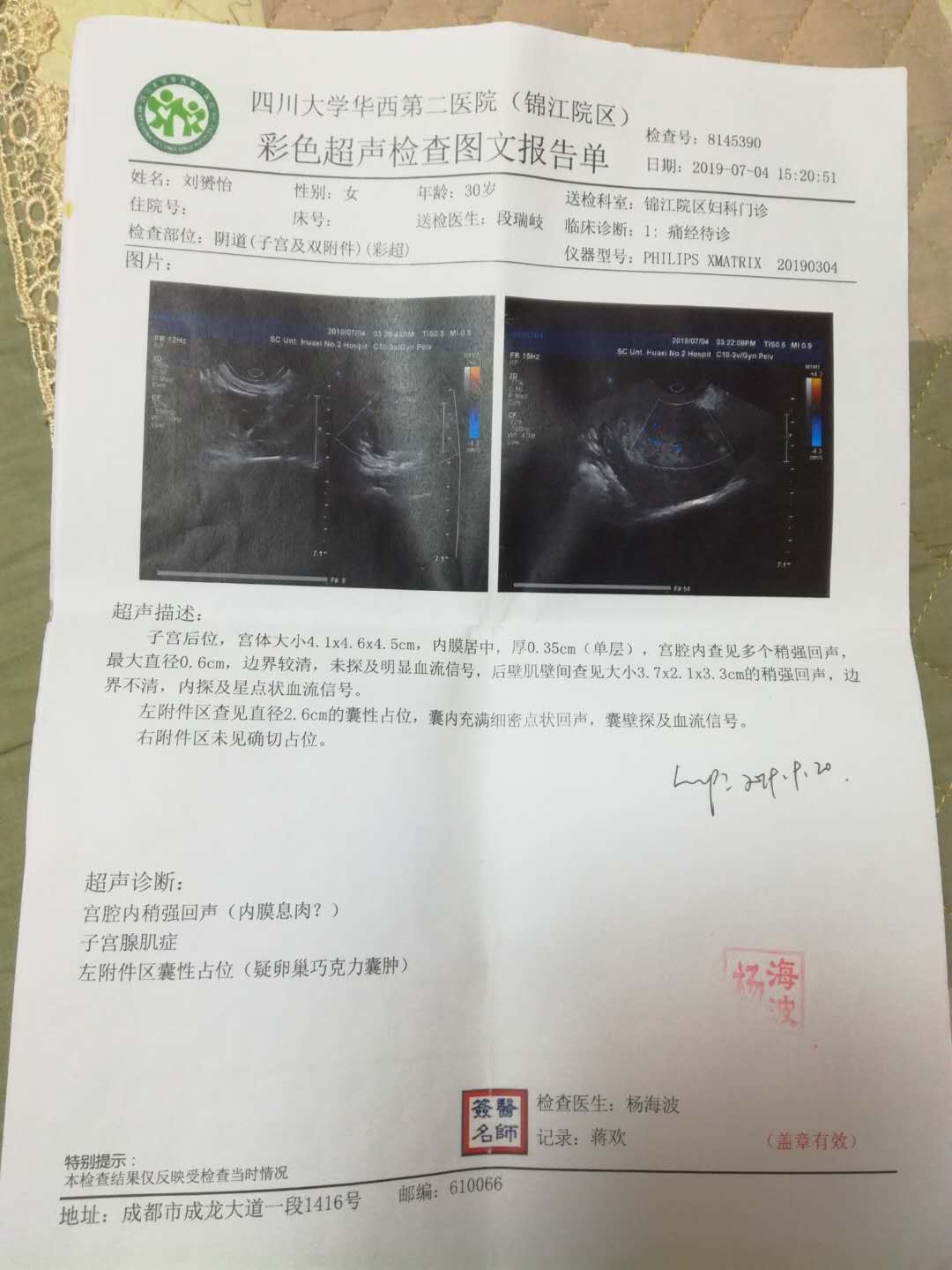 年龄31岁存在子宫内膜息肉子宫内膜炎子宫腺肌