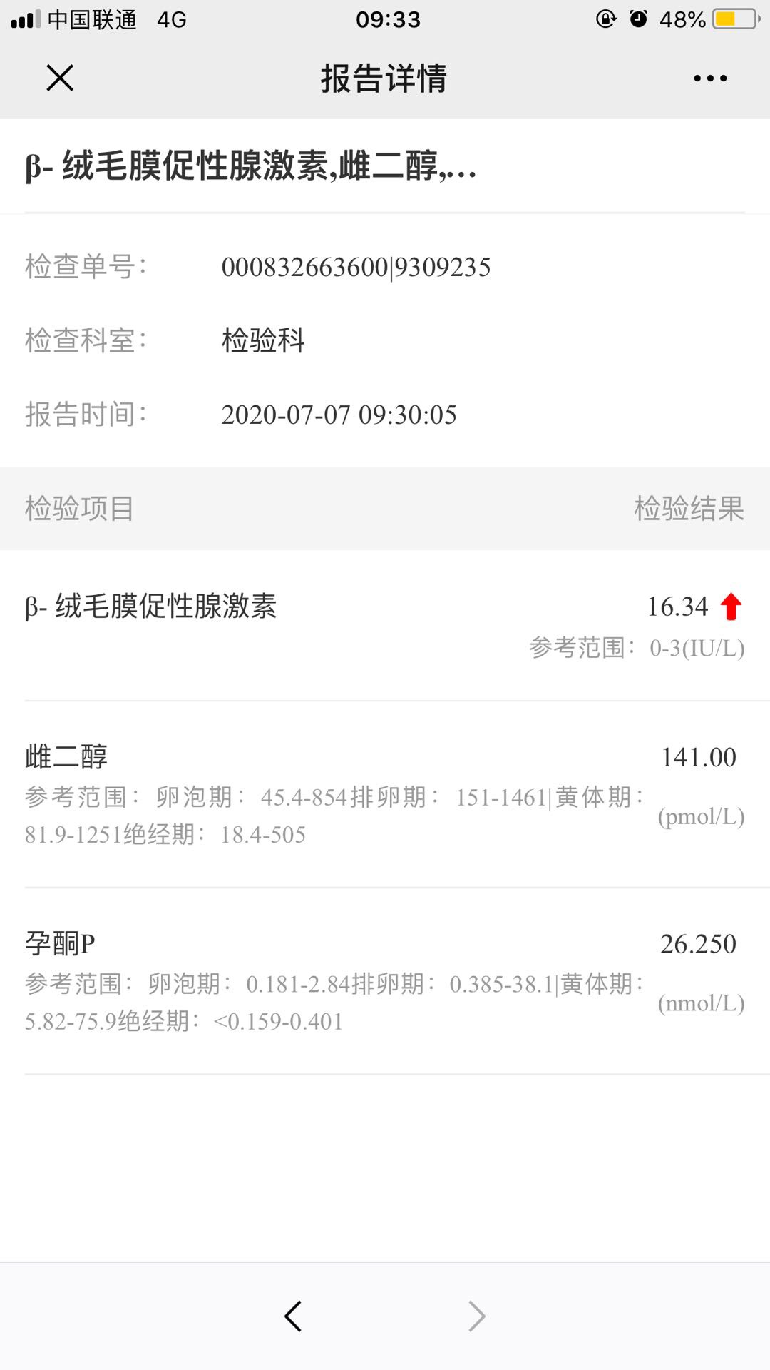 根据你描述的情况,一般最早能在移植后9-10天抽血测出HCG阳性,目前检查结果考虑发育正常,建议放松紧张的情绪,耐心等待1周后复查