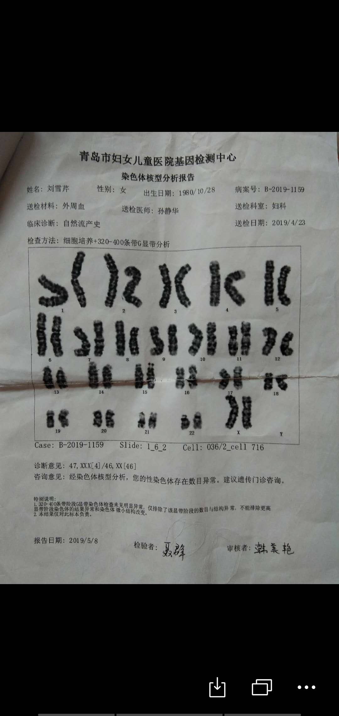 您这种情况属于染色体异常,这个建议暂时先别怀孕,先去医院咨询一下能不能做三代试管!这个自己怀孕的流产率很高很高!活产率几乎为o!慎重考虑!
