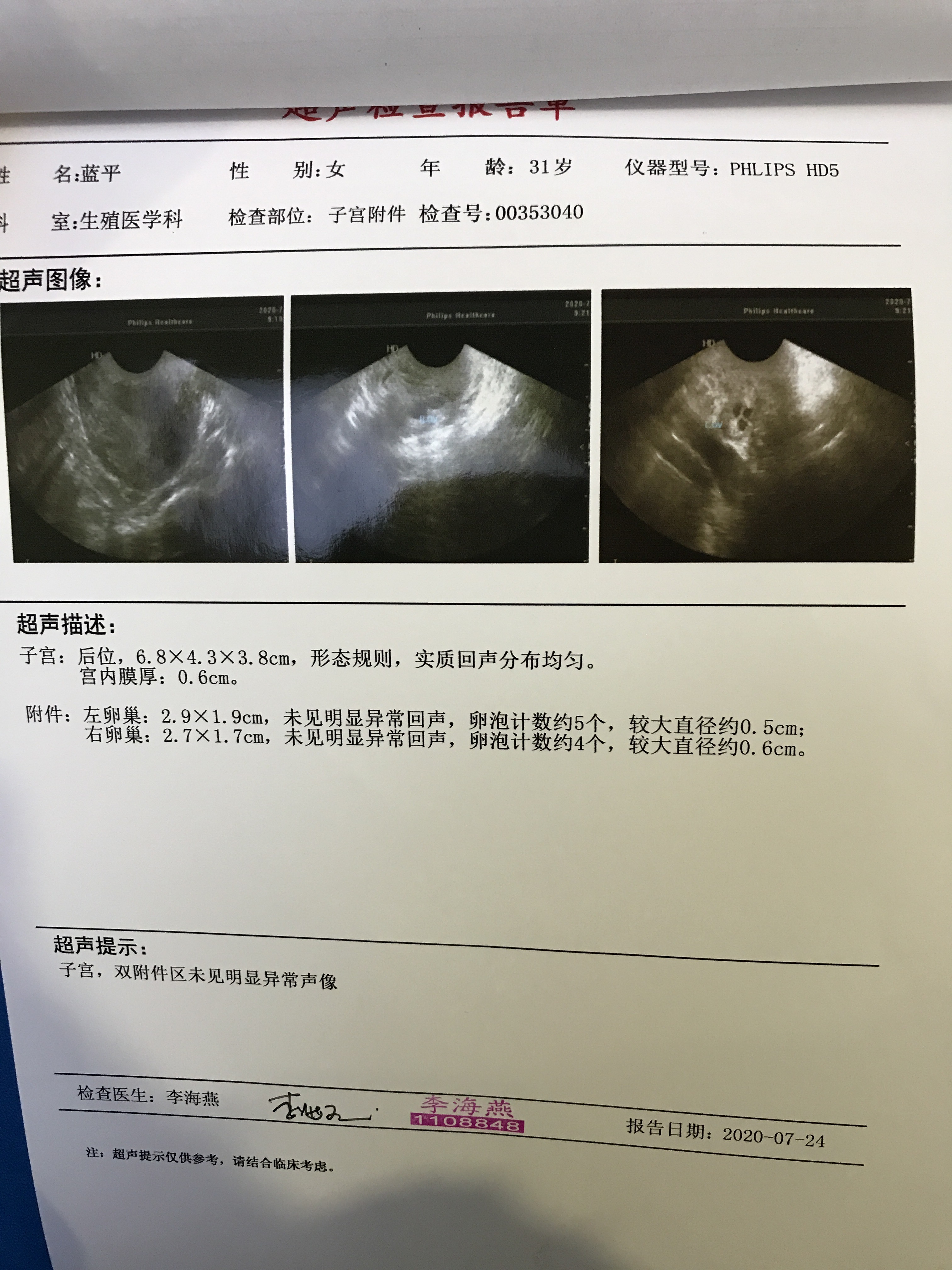 根据你描述的情况,一般最早能在移植后9-10天抽血测出HCG阳性,目前检查结果考虑发育正常,建议放松紧张的情绪,耐心等待1周后复查