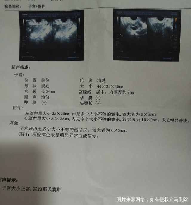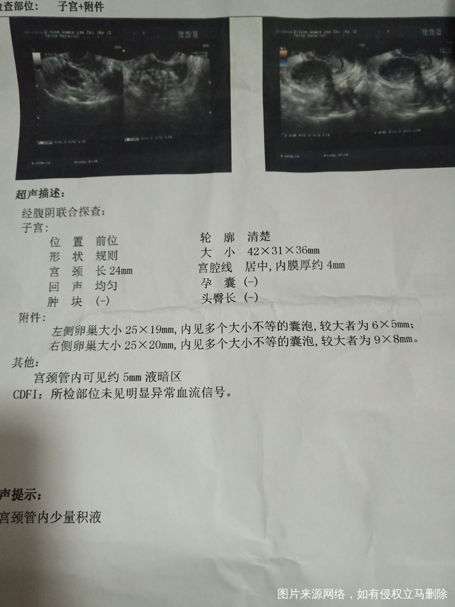 第一张是月经第十天做阴超测排卵报告第二张是第