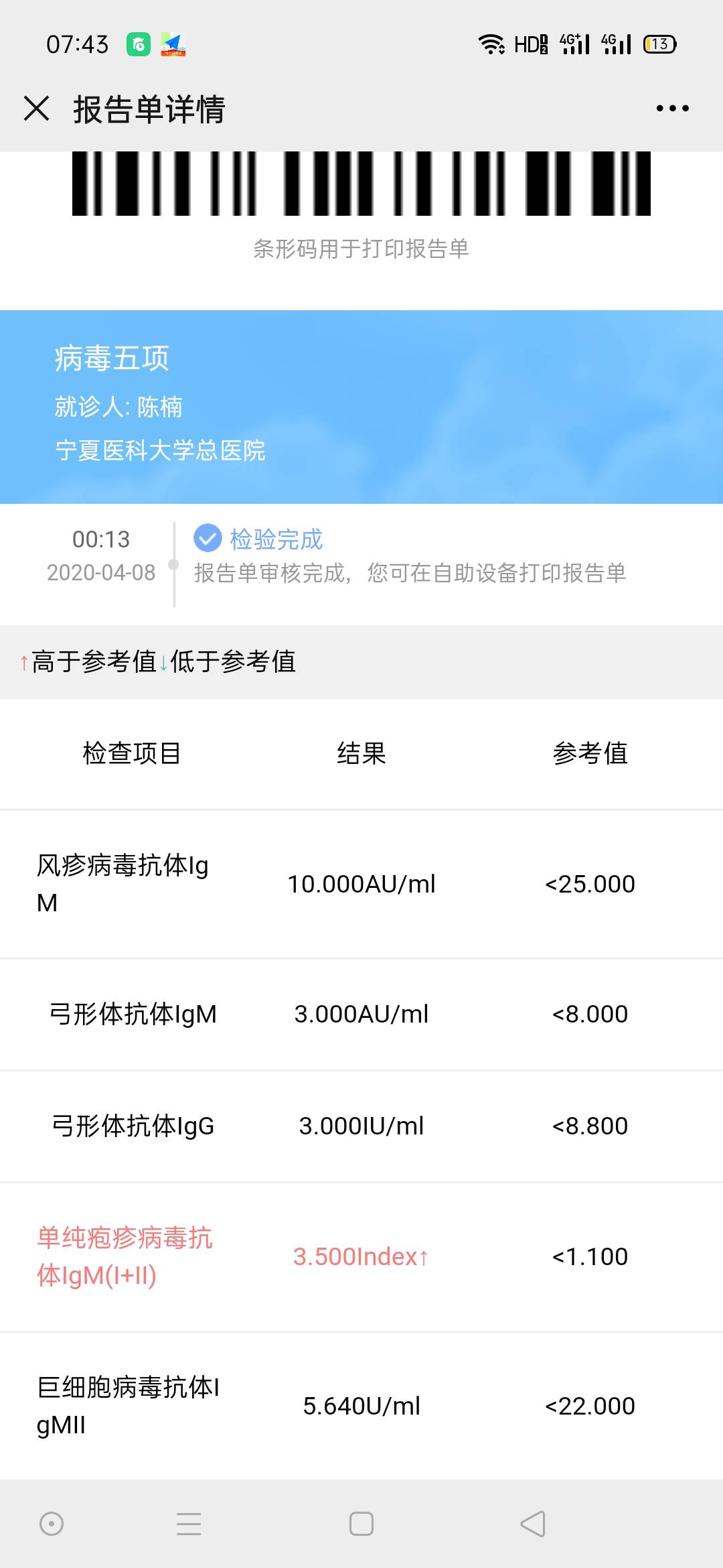 26岁,备孕一年无果,查了输卵管通而不畅,排卵也不太好,月经不调,周期紊乱,有时两个月才来一次,促排两次无果,决定试管,一枚4bb囊胚,第14天Hcg607,第18天开始血值往下掉,第20天掉到Hcg100,宣布生化,请问我这个情况需要做什么检查来找找生化的原因呢?还是不做调整继续?查到单纯疱疹病毒阳性(如图)这个有没有影响是否需要治疗?