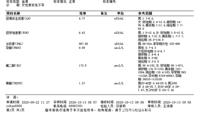 帮忙看下各项结果,难怀孕!泌乳素高现在正吃臭隐亭