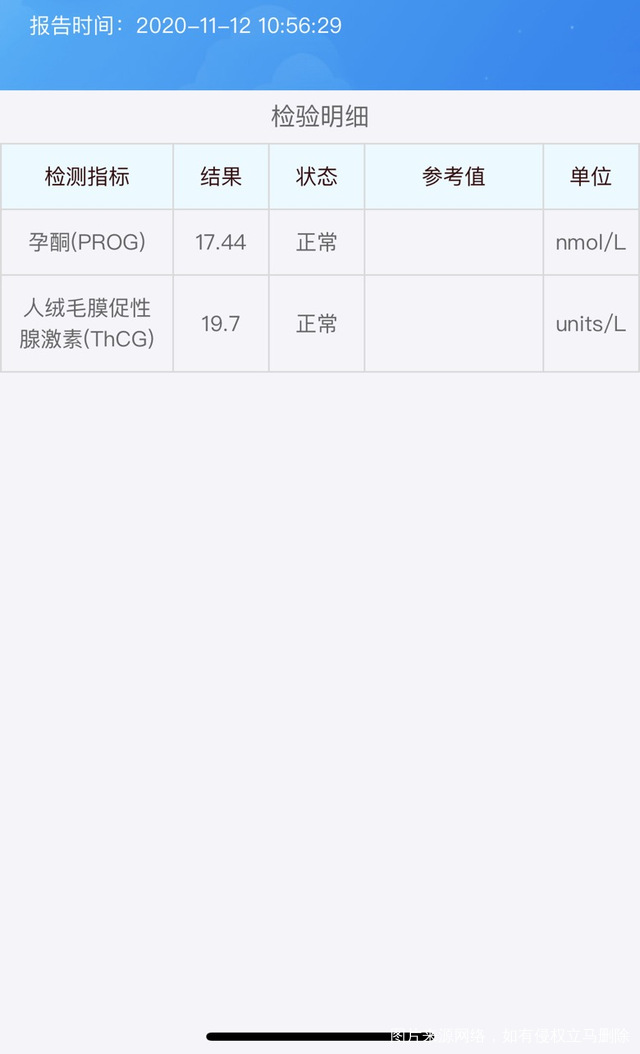 11.3日2冻胚,11.10试纸测出灰印,回医院抽血hcg只有0.76,在医院打了2000的hcg。11.12回医院继续抽血,hcg19.7,又打了针2000hcg,我不知道是自身血值涨了,还是因为打hcg的原因