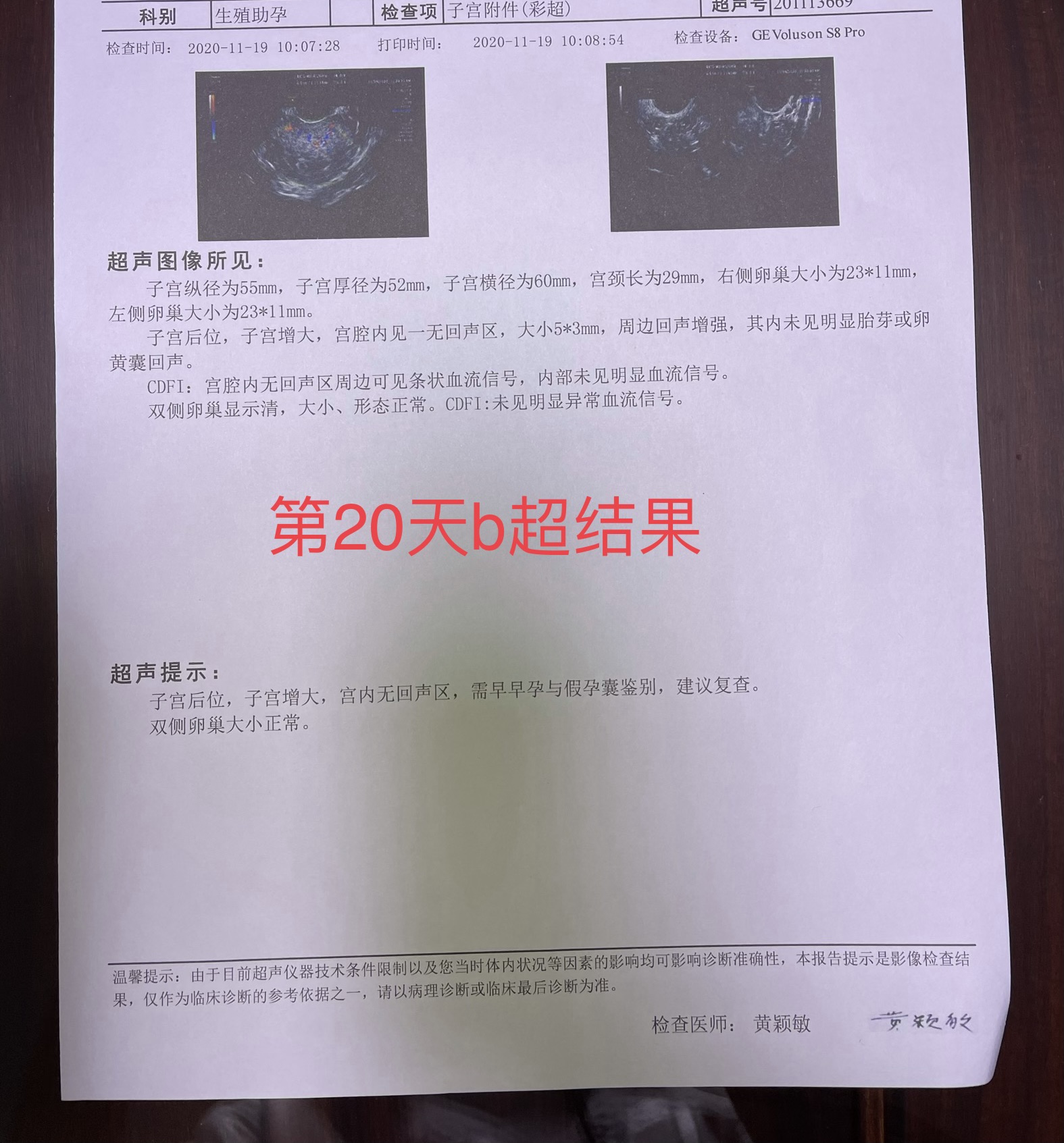 根据你描述的情况,一般最早能在移植后9-10天抽血测出HCG阳性,目前检查结果考虑发育正常,建议放松紧张的情绪,耐心等待1周后复查