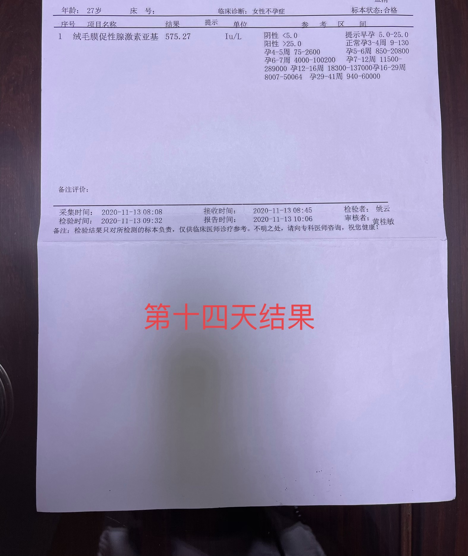 10月30日移植3天的冻胚一个第14天开奖抽