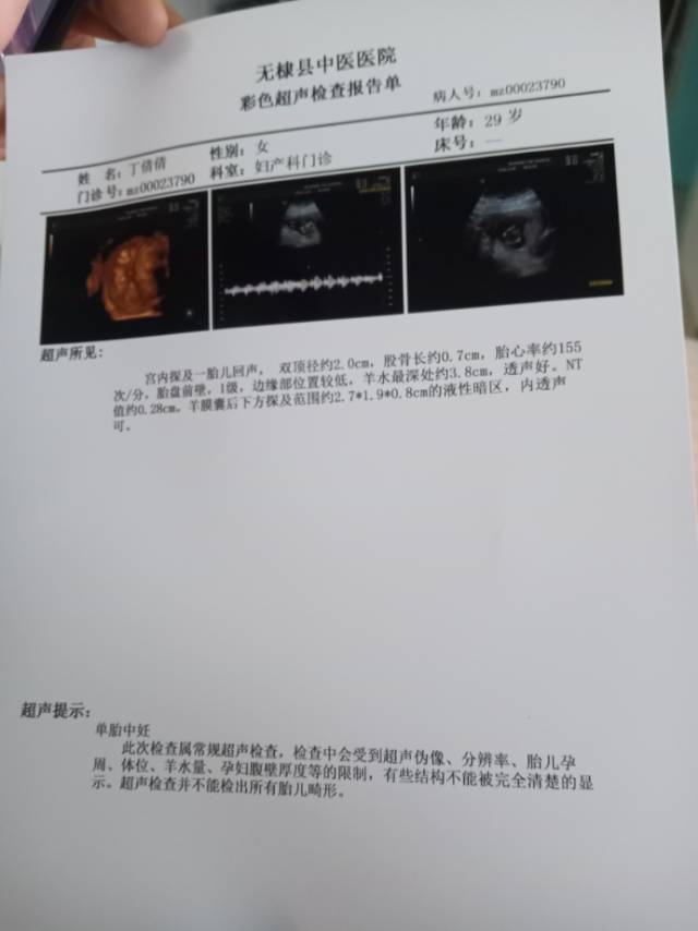 做的nt,nt值偏高,还有液体暗区