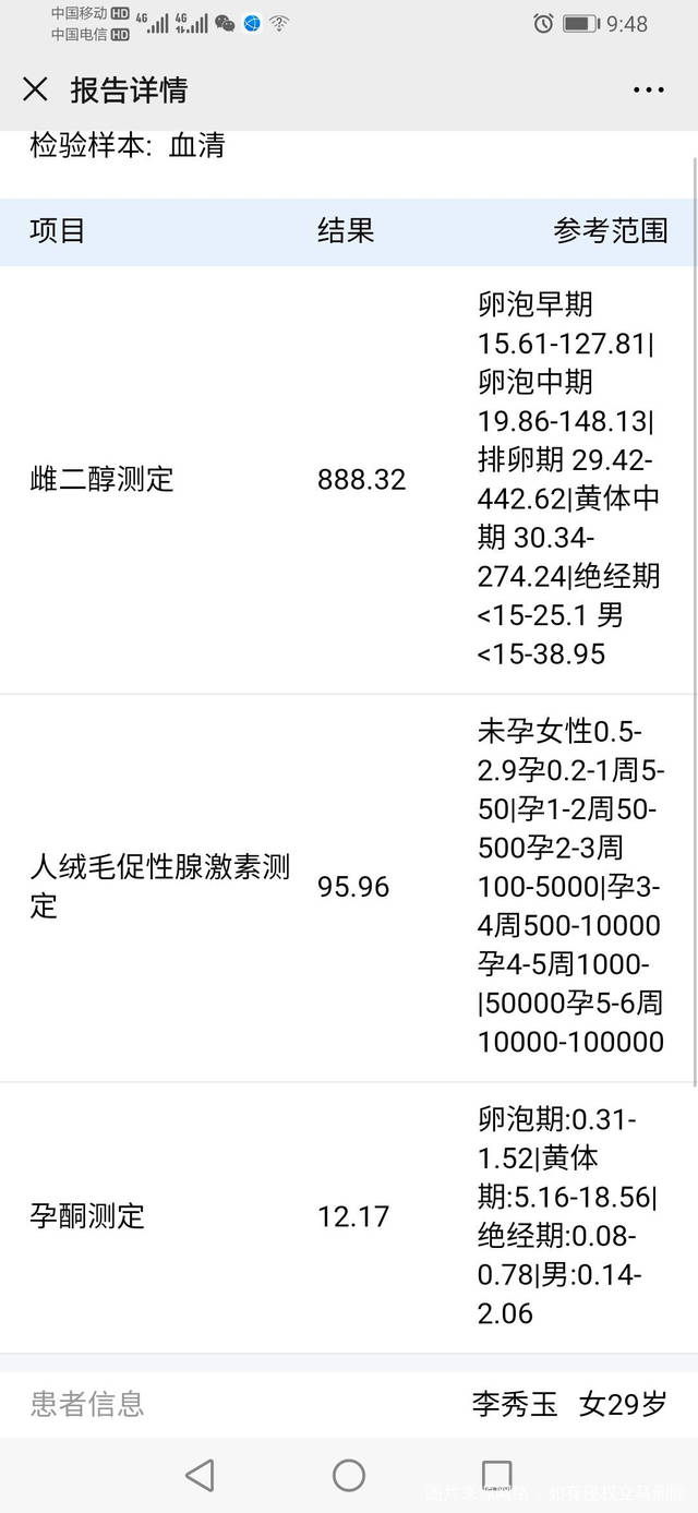 根据你描述的情况,一般最早能在移植后9-10天抽血测出HCG阳性,目前检查结果考虑发育正常,建议放松紧张的情绪,耐心等待1周后复查