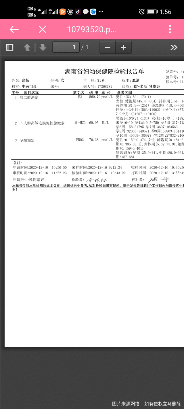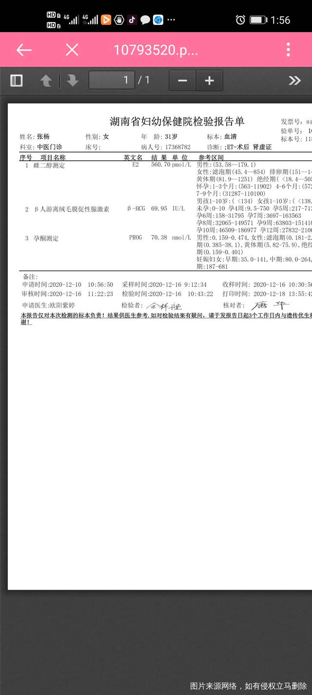 根据你描述的情况,一般最早能在移植后9-10天抽血测出HCG阳性,目前检查结果考虑发育正常,建议放松紧张的情绪,耐心等待1周后复查