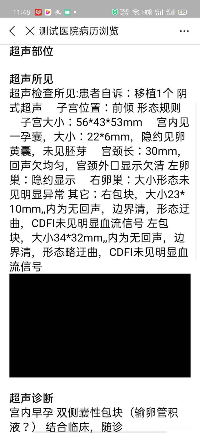 根据你描述的情况,一般最早能在移植后9-10天抽血测出HCG阳性,目前检查结果考虑发育正常,建议放松紧张的情绪,耐心等待1周后复查