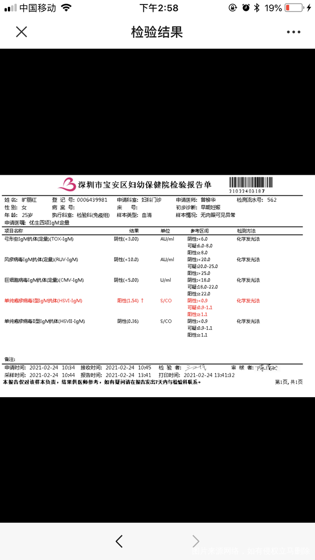意外怀孕4周去检查优生四项其中单纯疱疹病毒1
