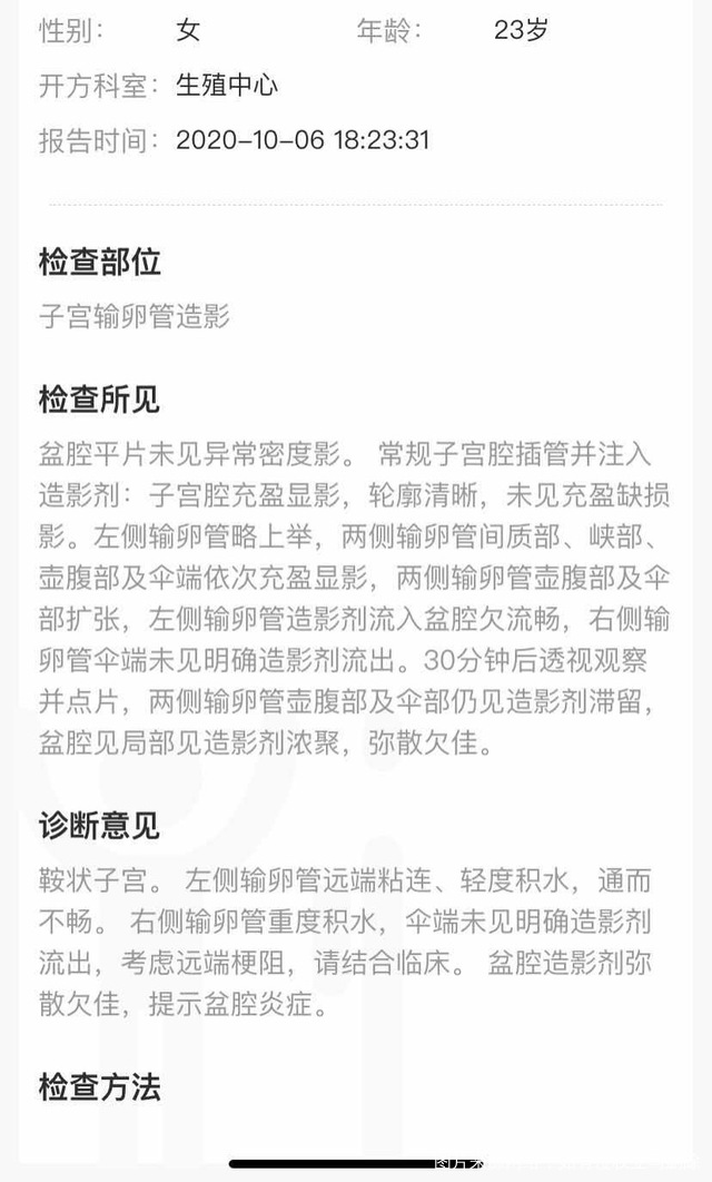我现在已经取卵马上待了,麻烦医生帮我看一下输卵管造影结果,积水对有影响吗?