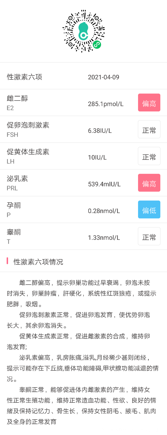 已吃优思明和二甲三个月,月经第三天抽血的报告。