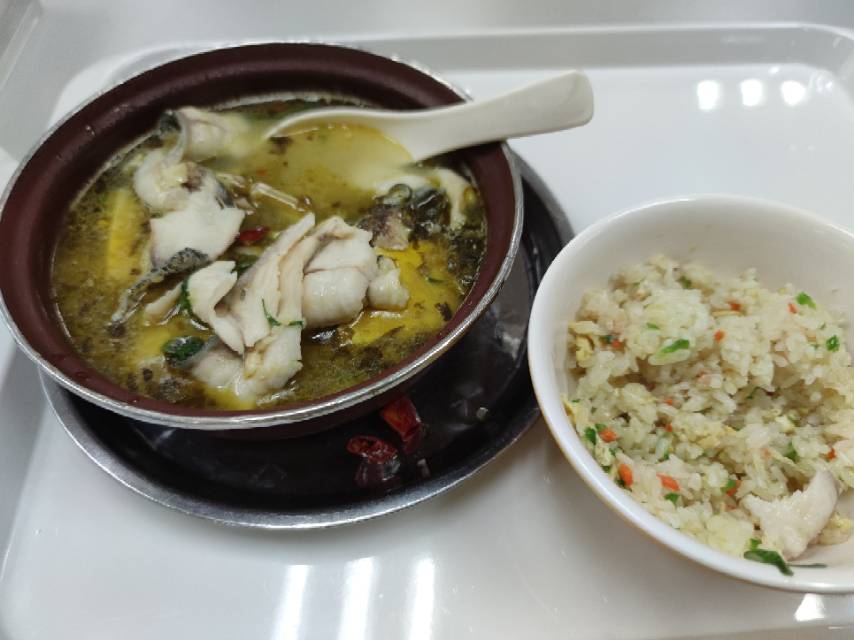 今天中饭打卡,吃扬州炒饭,还有黑鱼砂锅。。