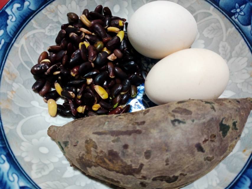 早餐鸡蛋紫薯黑豆加牛奶午餐荞麦青菜面下午加餐