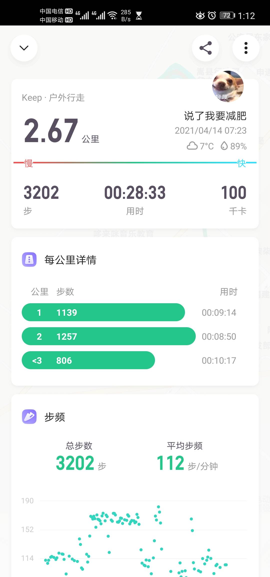 今日晨练,快走+跑步2.6公里,跳绳1000