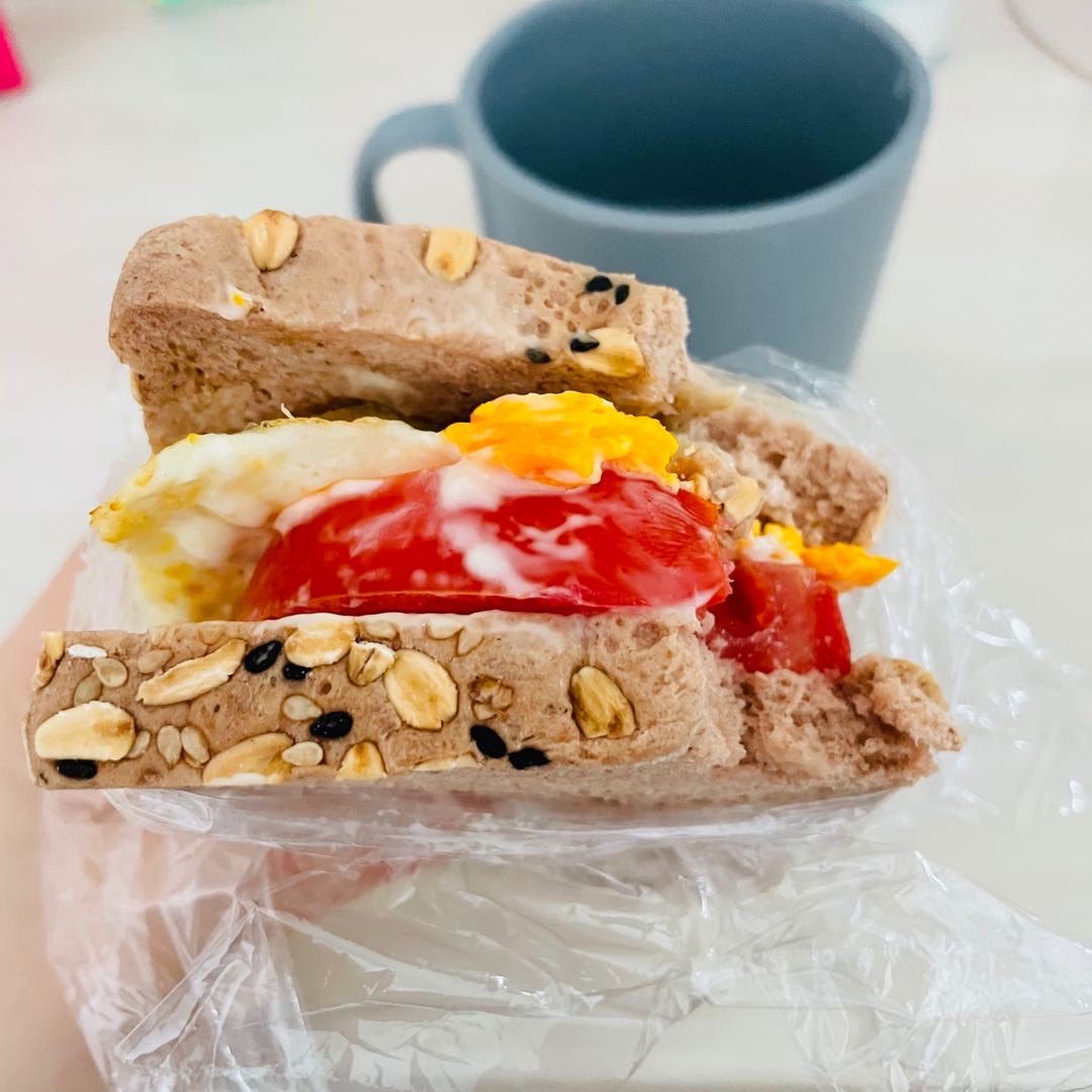 图一早餐自己做了个三明治,午餐吃了花甲粉,忘