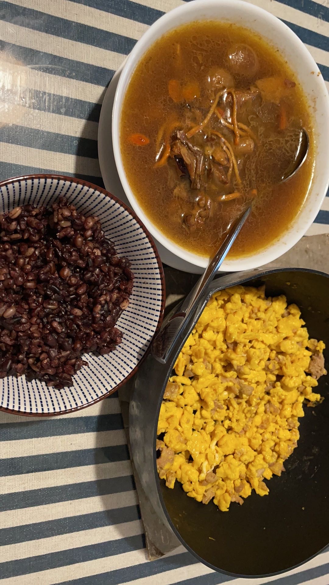 午餐:一个人随便炒个蛋,懒得煮青菜了,半碗饭
