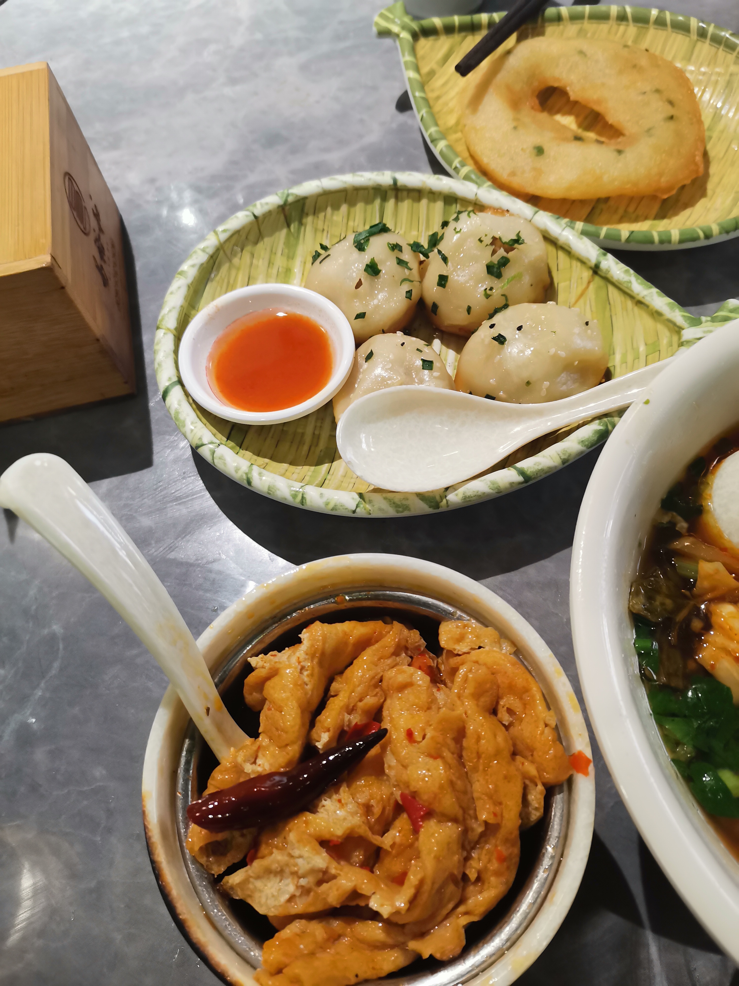 牛肉粉,兰花干子,生煎包,葱油饼。