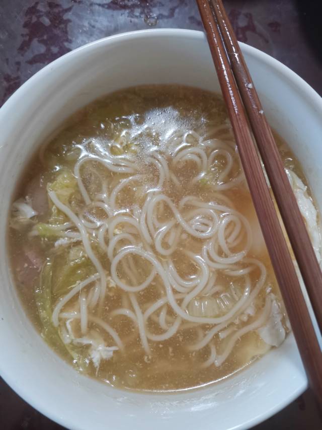 早餐一碗超细面条,一个鸡蛋,一小点咸菜