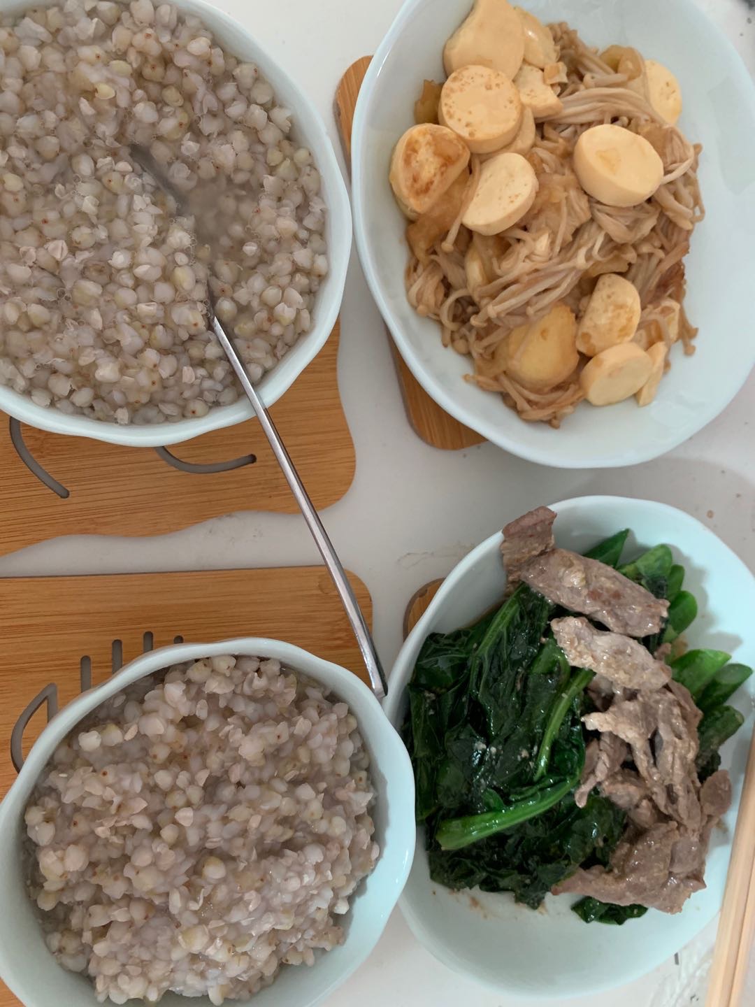 午餐:日本豆腐金针菇,牛肉炒芥蓝,荞麦粥