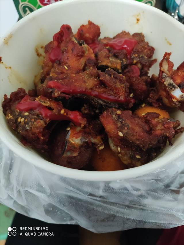 今天破戒了,早上吃的面包,中午吃的烤鱼,晚上吃炸串……
