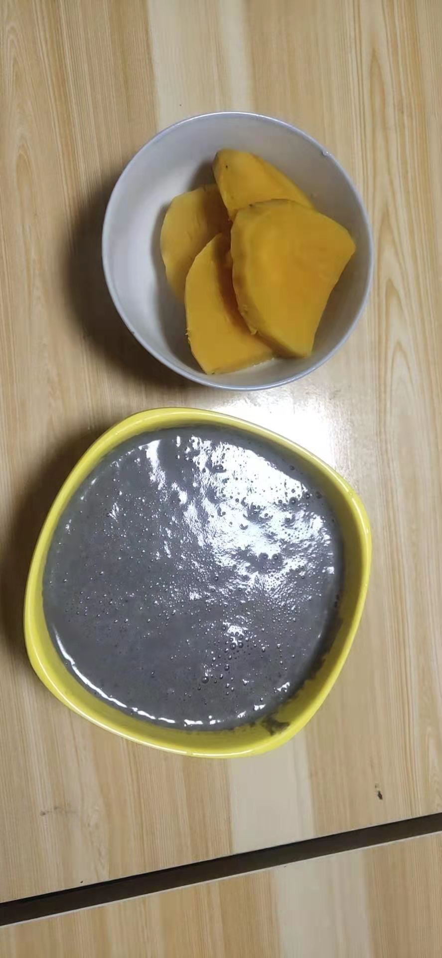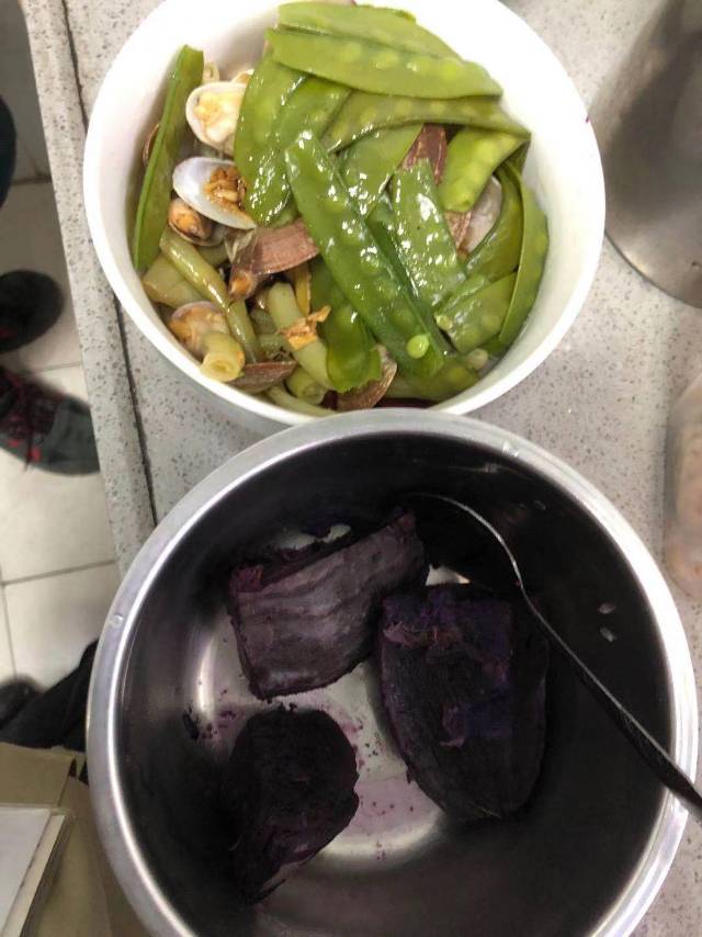 早餐,牛奶,芝麻丸 午餐,紫薯,芸豆花蛤 晚