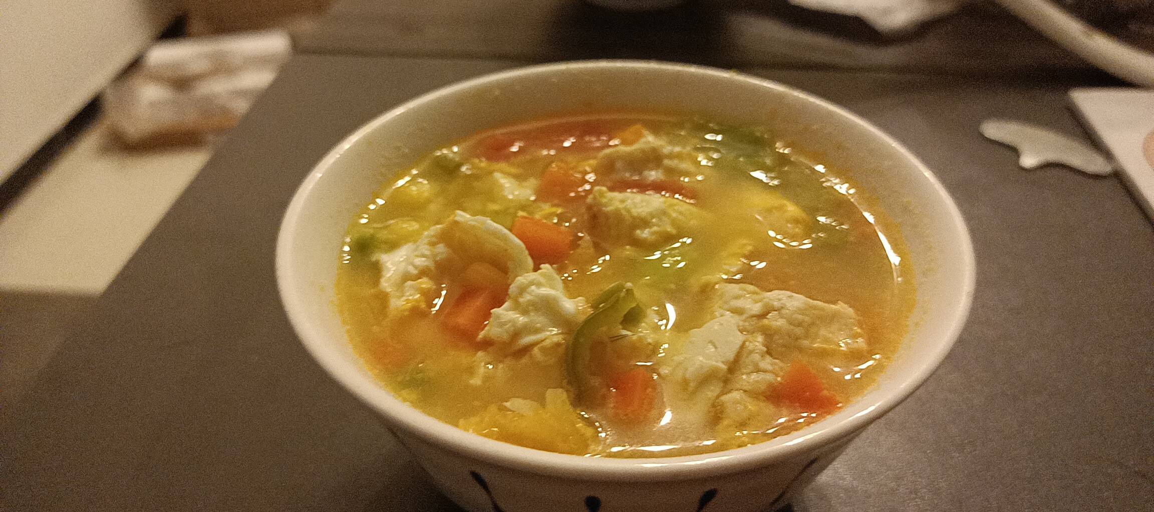 胡萝卜玉米豆角青椒鸡蛋豆腐汤