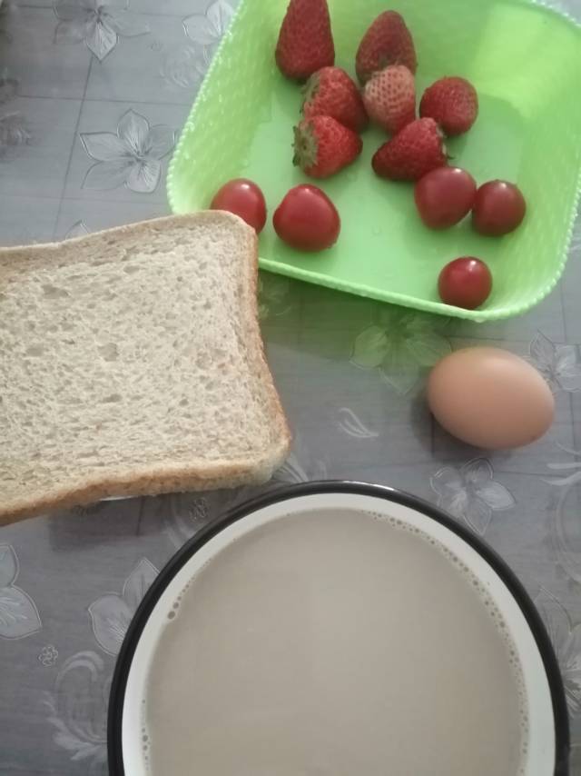 早餐,一个鸡蛋,一片全麦面包,一块猪肝,一碗