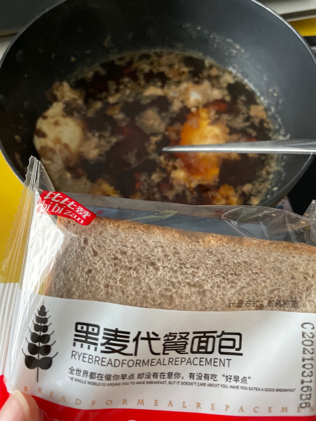 早餐:两个水泼乌鸡蛋+一片黑麦面包