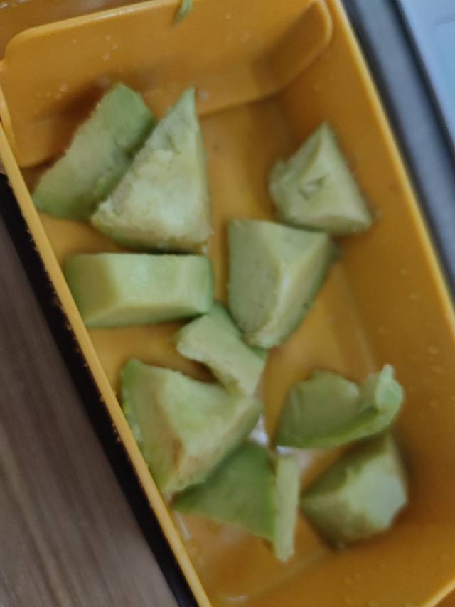 早餐:一个牛油果+两个鸡蛋~