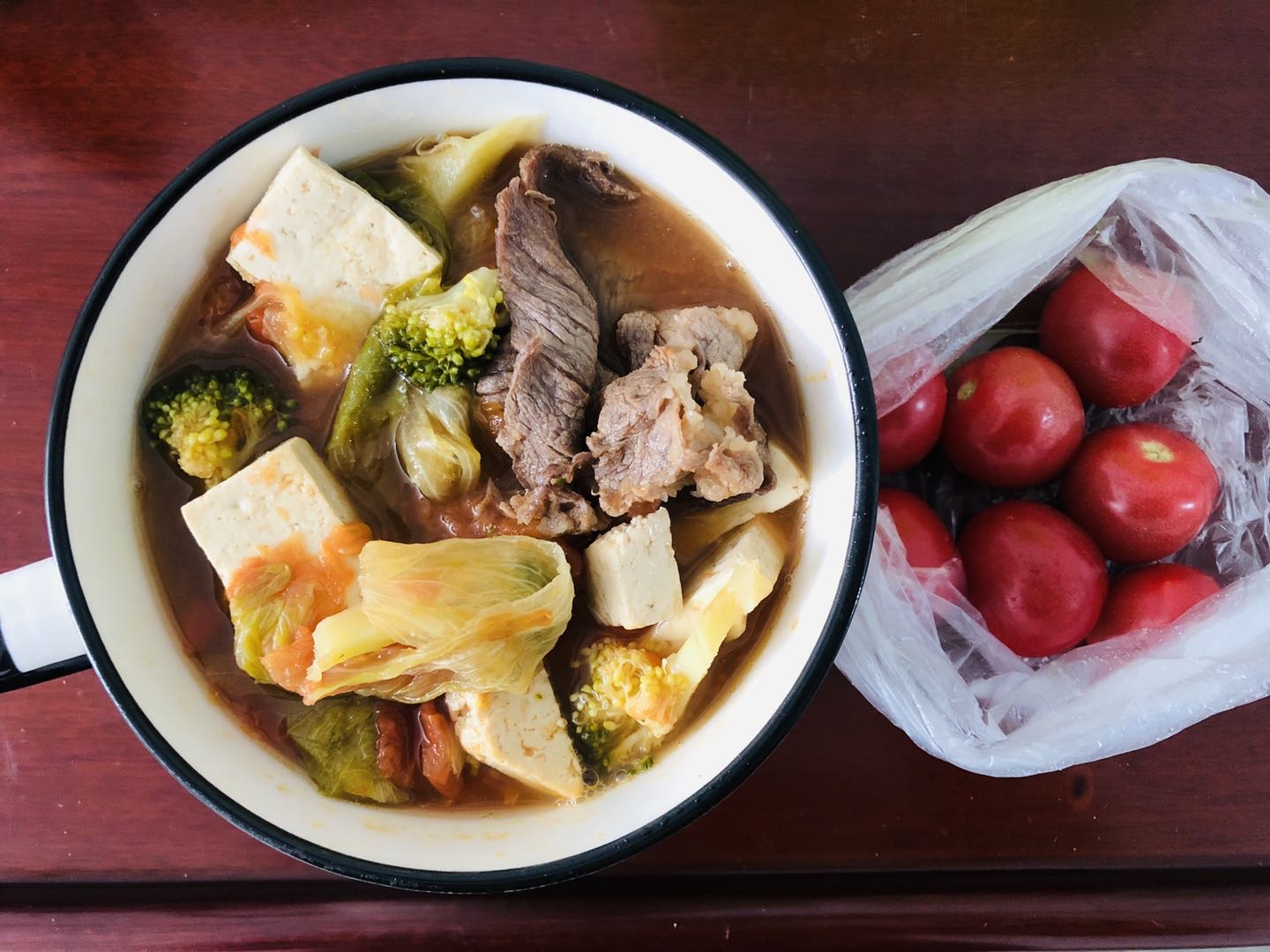 午餐番茄牛肉汤吃完感觉好饱