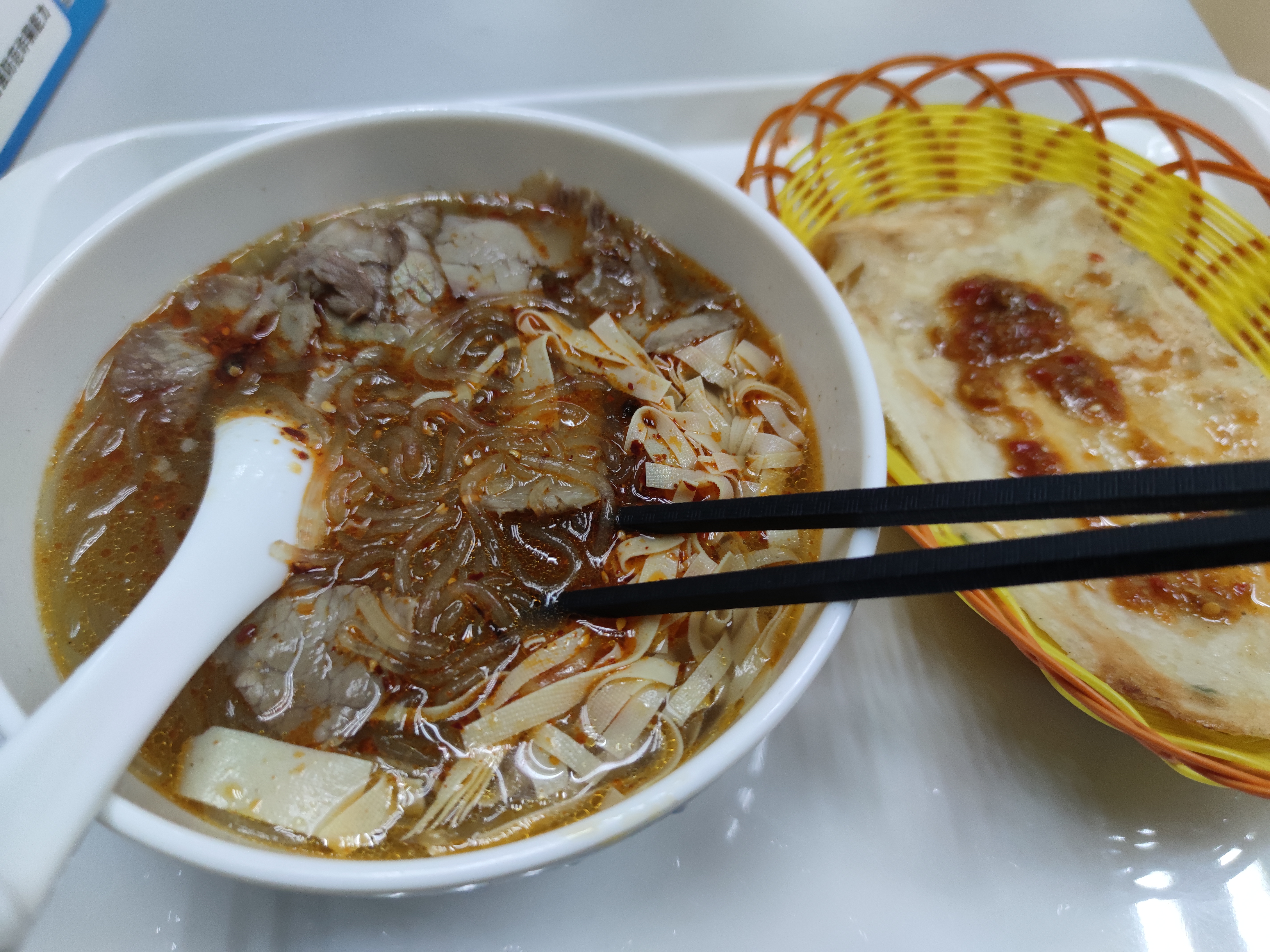 打卡今天的中饭,牛水摇牛肉汤和饼一块,单位卖