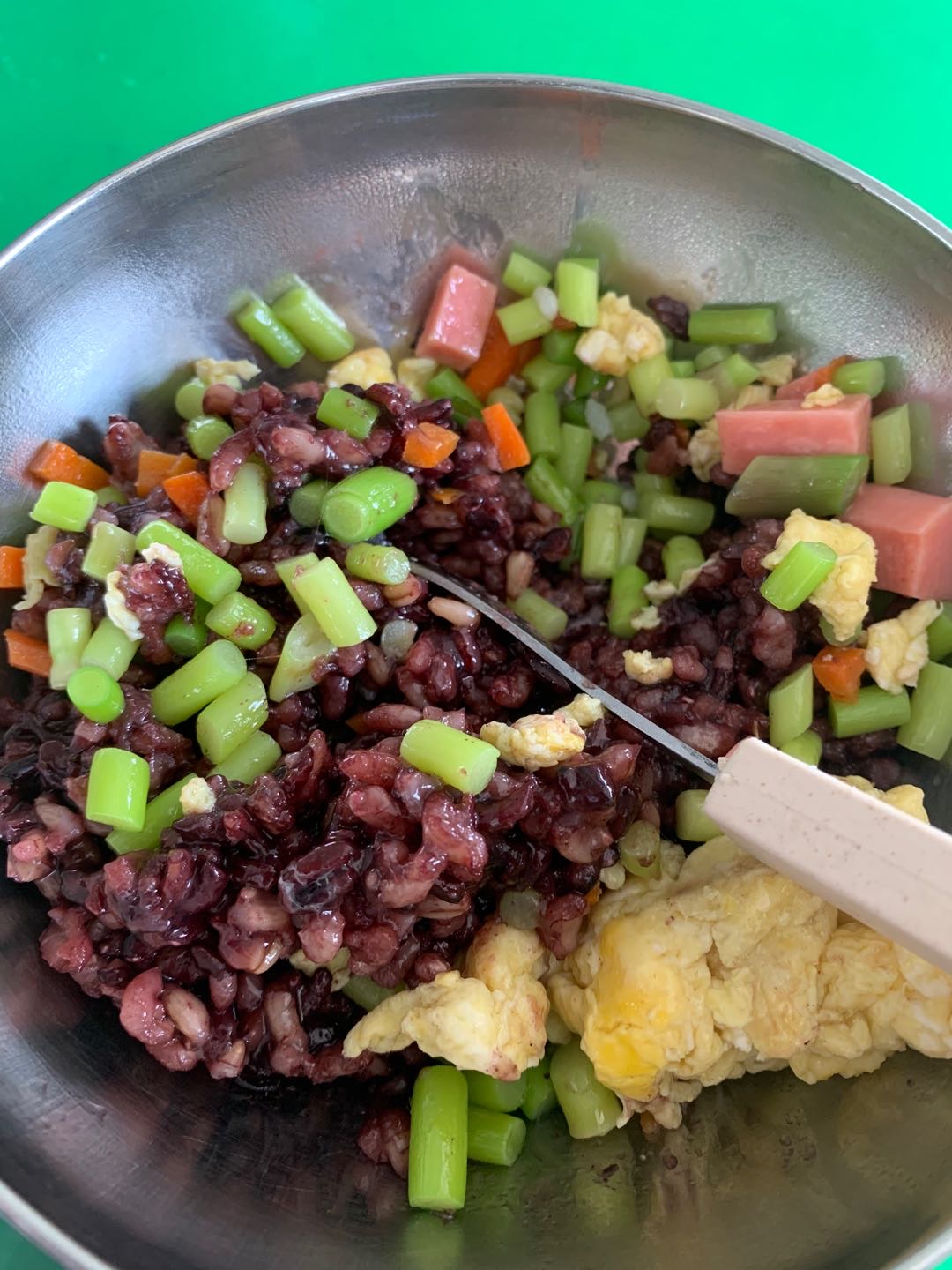 早餐 牛奶 面包 午餐 杂粮饭 鸡蛋炒蒜苔