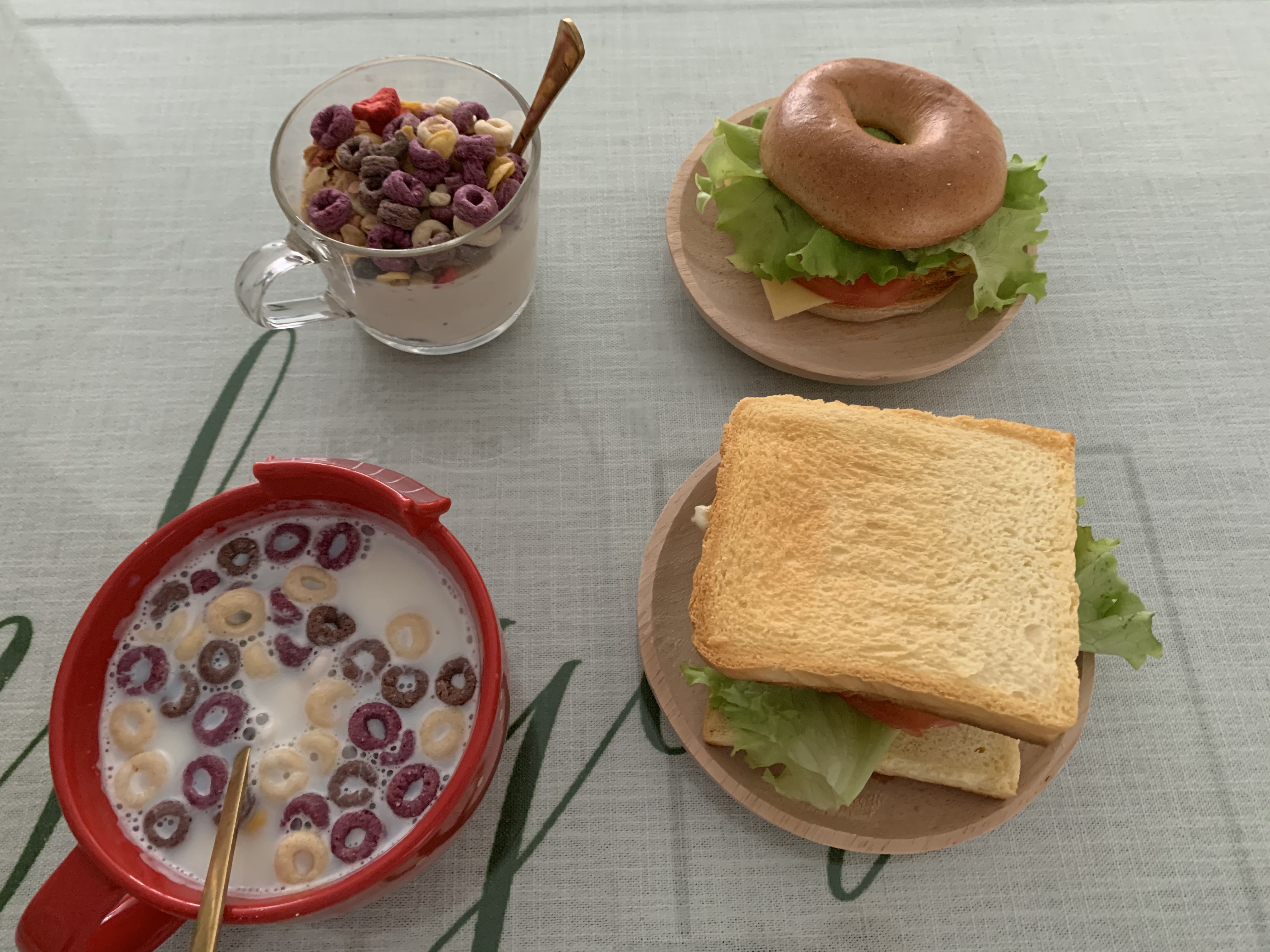 全麦贝果三明治➕牛奶低脂谷物圈