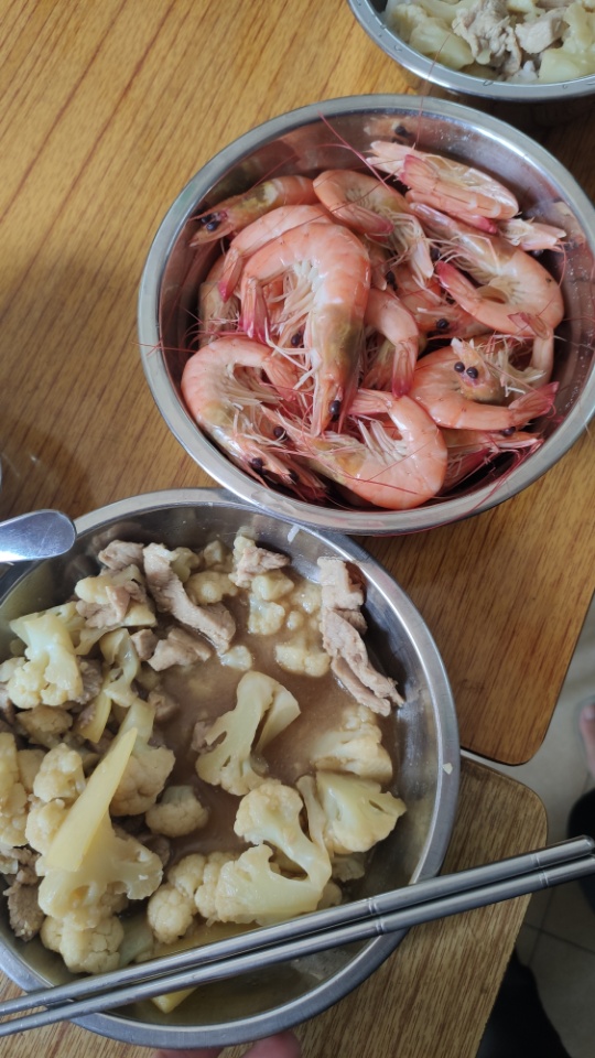 午饭打卡:豆腐香菜瘦肉汤➕白灼虾和朋友一起吃