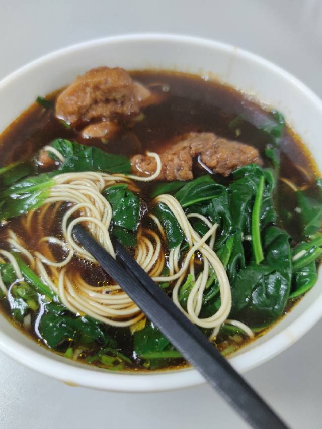 打卡今天的晚餐,大排菠菜面,吃的太饱了