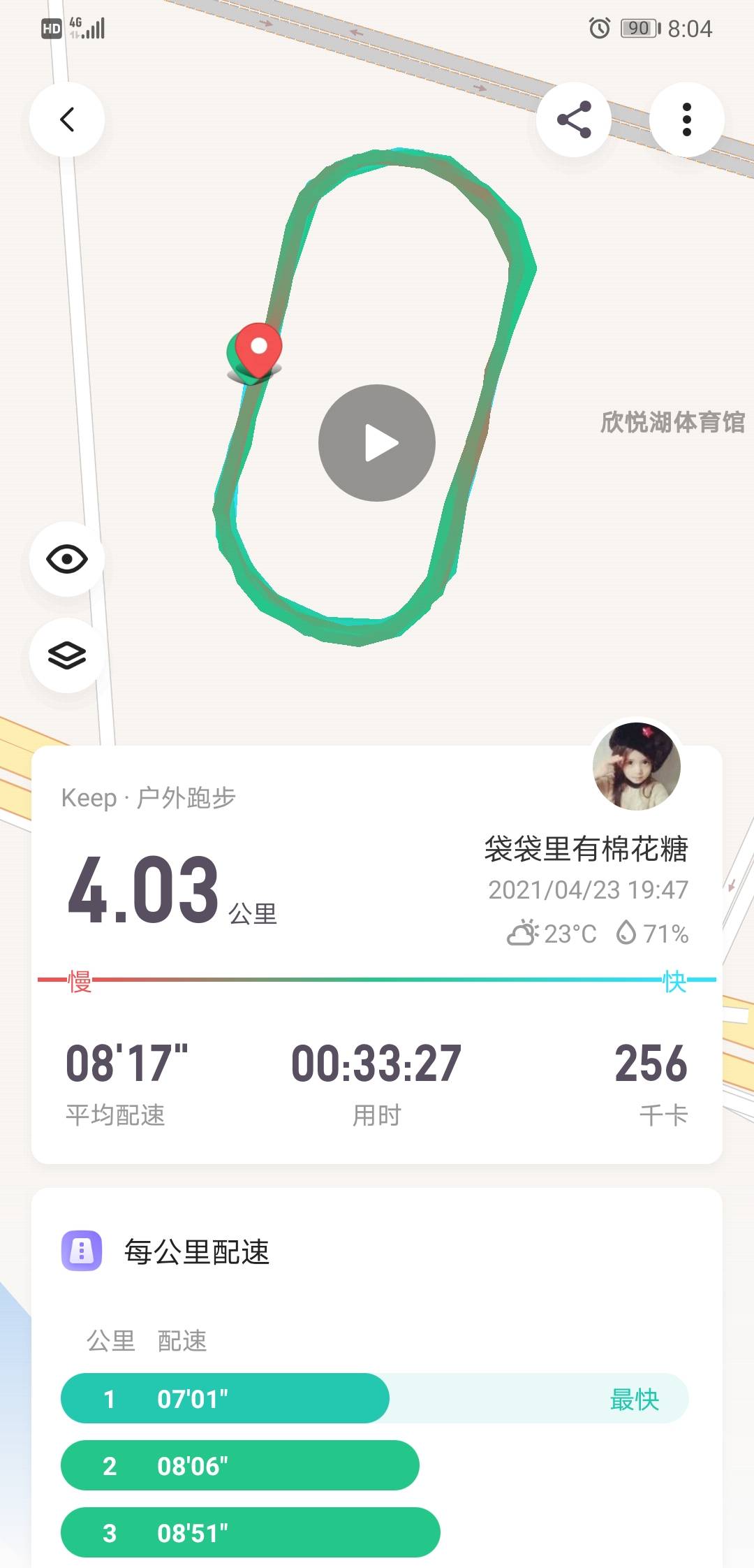 第四天跑步今天跑的第一公里的速度和长度都有进