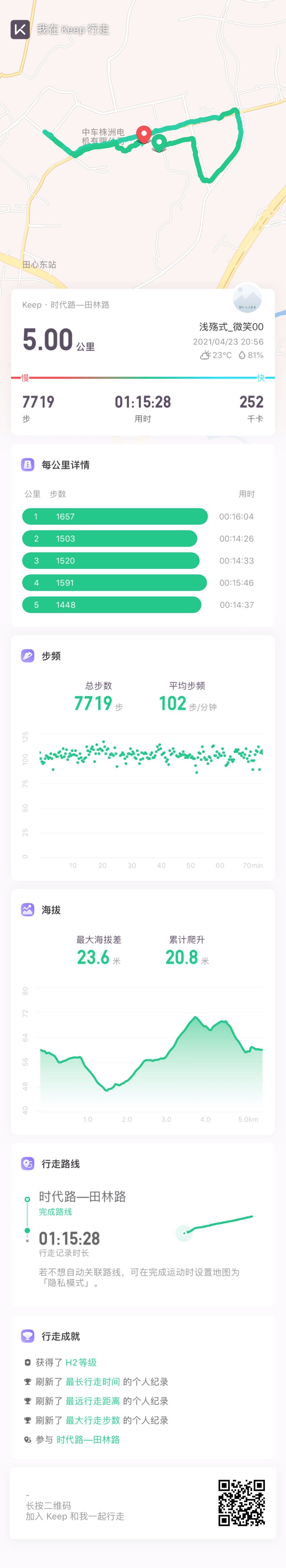 散步~5公里,耗时一个小时十五分钟~出汗的感