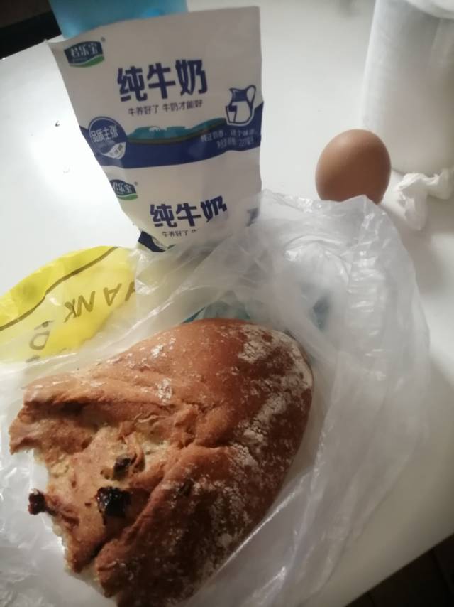 今日饮食打卡: 早餐,一个水煮鸡蛋,一袋纯牛