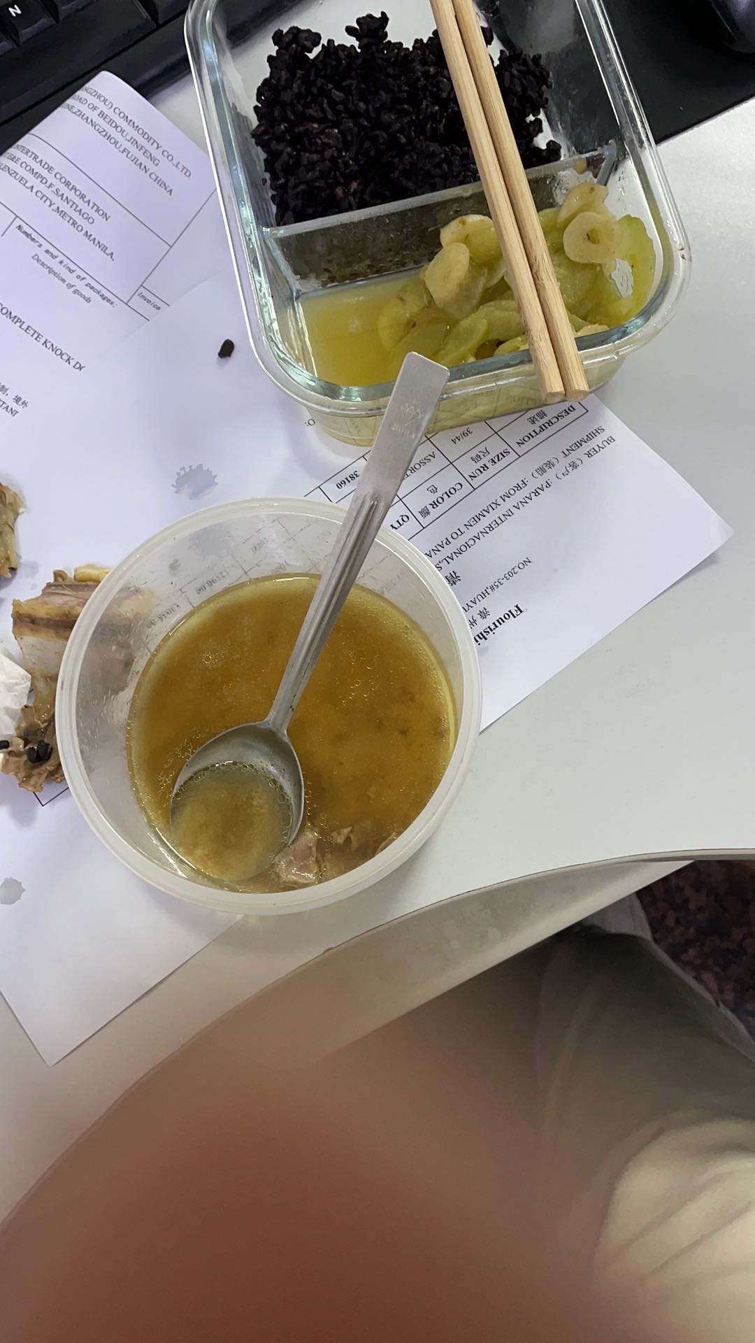 中午饭难吃吃了几块老母鸡汤晚上吃黄翅鱼花蛤空