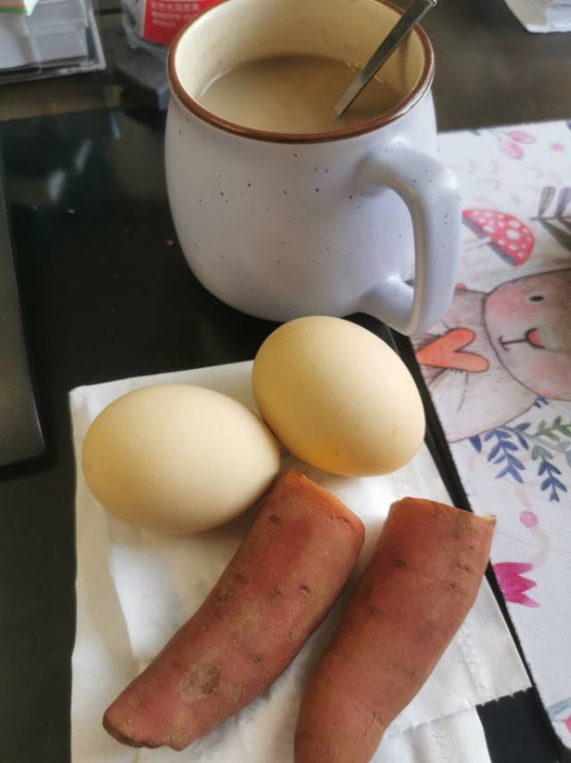 早餐打卡第一天黑豆浆+水煮蛋+红薯