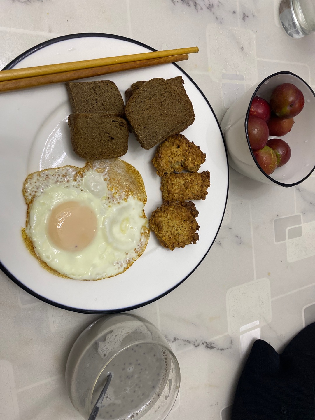 全麦面包片燕麦饼干全蛋1黑豆浆奇亚籽李子