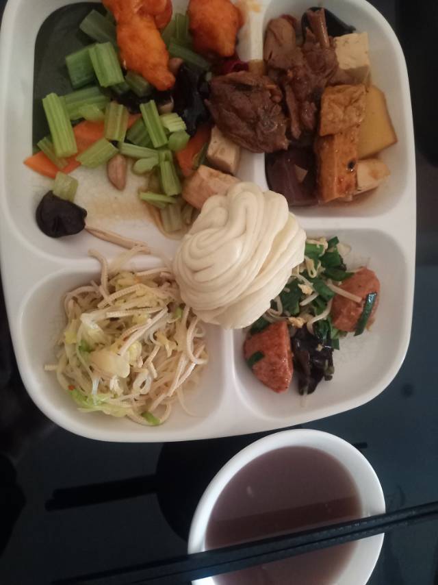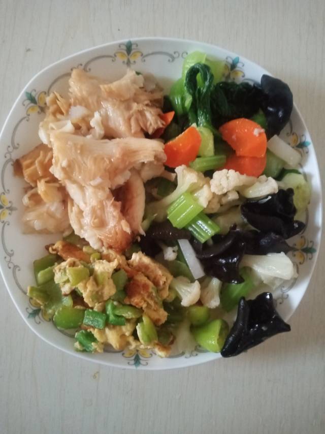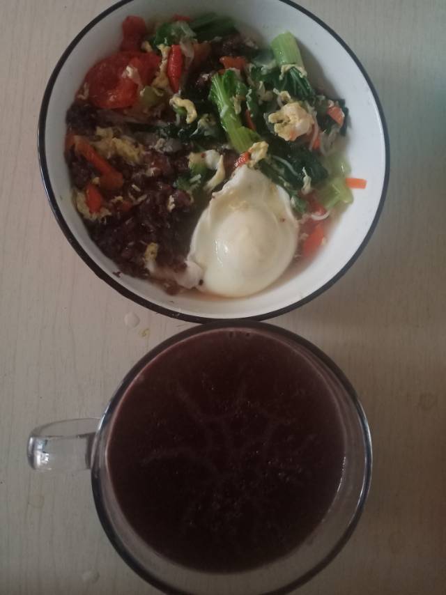 早饭,豆浆荷包蛋水煮菜杂粮, 中午杂粮粥一小