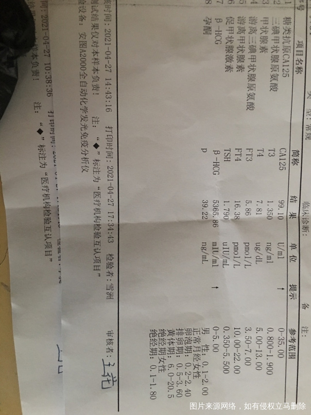 怀孕前CA125值989怀孕35天CA125