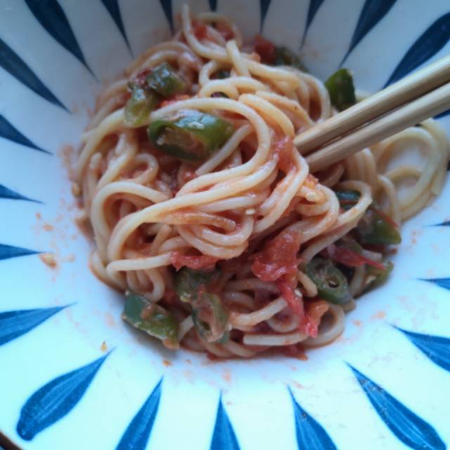 今日晚餐:一大口番茄意面😂 ,外加一块蒸南