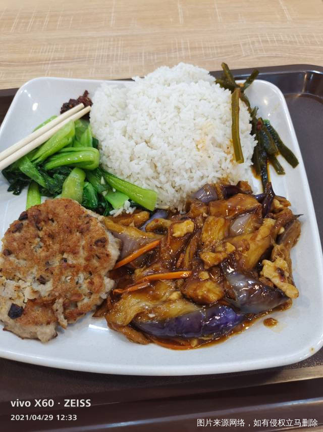 #第2天# 米饭、青菜、莲藕肉饼、茄子、